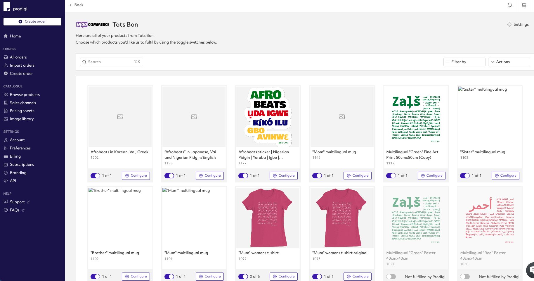 • Can easily toggle Prodigi to fulfill or not to fulfill products